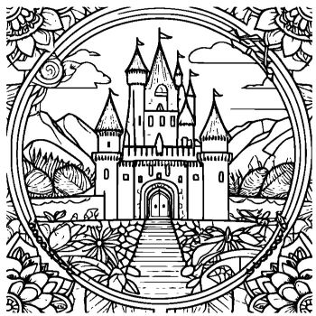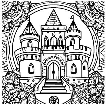 おとぎ話に登場するような夢のお城を、マンダラ風にアレンジした塗り絵を10種類ご用意しました。